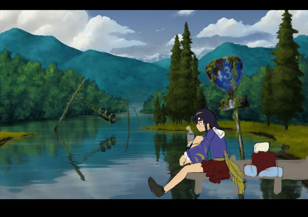 山の描き方がいまいちわからなかったんですが一応風景写真やら背景イラストを参考にしながら模索しつつ描き進めました。