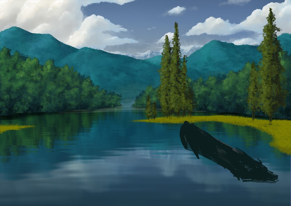 めちゃくちゃ汚くて意味不明かもしれませんが、一応空が湖に反射してる的なイラストを描こうとしてます。