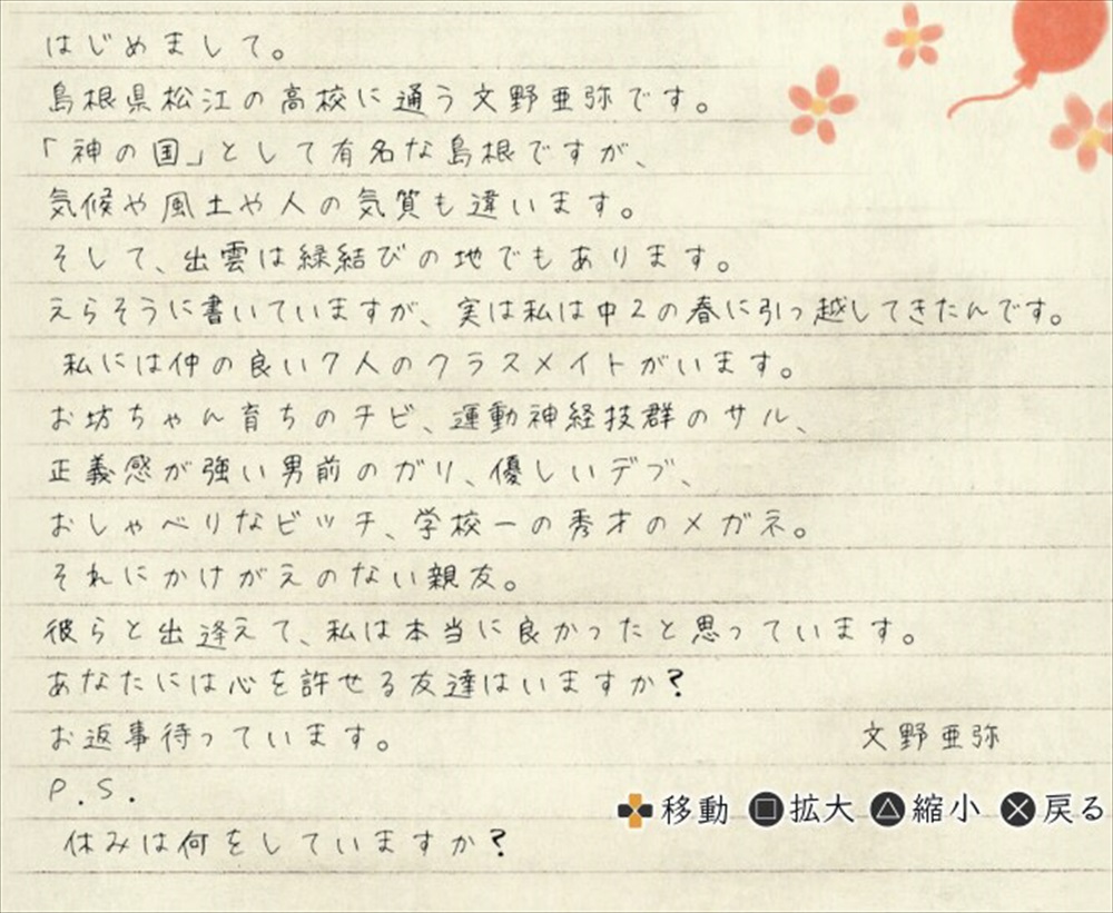 / ‐=・=‐ ‐=・= \ これはゲーム内で登場する便箋だよね