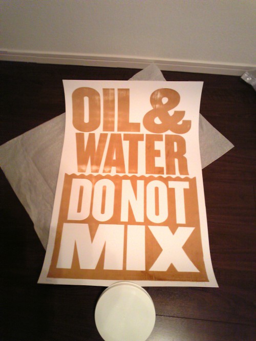 水と油は混ざらない、メキシコ湾の原油でプリントされたメッセージ性の強いポスター