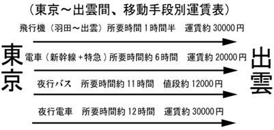 これじゃあ、安く行きたい人はバスに乗るし、早く行きたい人は飛行機に乗っちゃうよ。 |